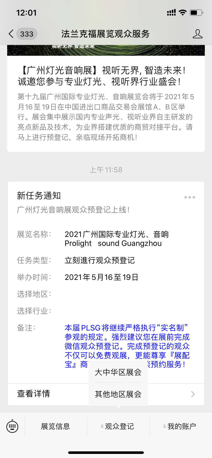 根據(jù)全國疫情防控要求,本屆PLSG將繼續(xù)嚴格執(zhí)行“實名制”參觀的規(guī)定。您可以在展前完成微信觀眾預(yù)登記,手機微信搜索:“法蘭克福展覽會服務(wù)”公眾號進行觀眾登記,不僅可以節(jié)省現(xiàn)場排隊登記的時間免費觀展,更能提前獲取大會活動與各類展品的詳細資訊,助您提升觀展體驗。